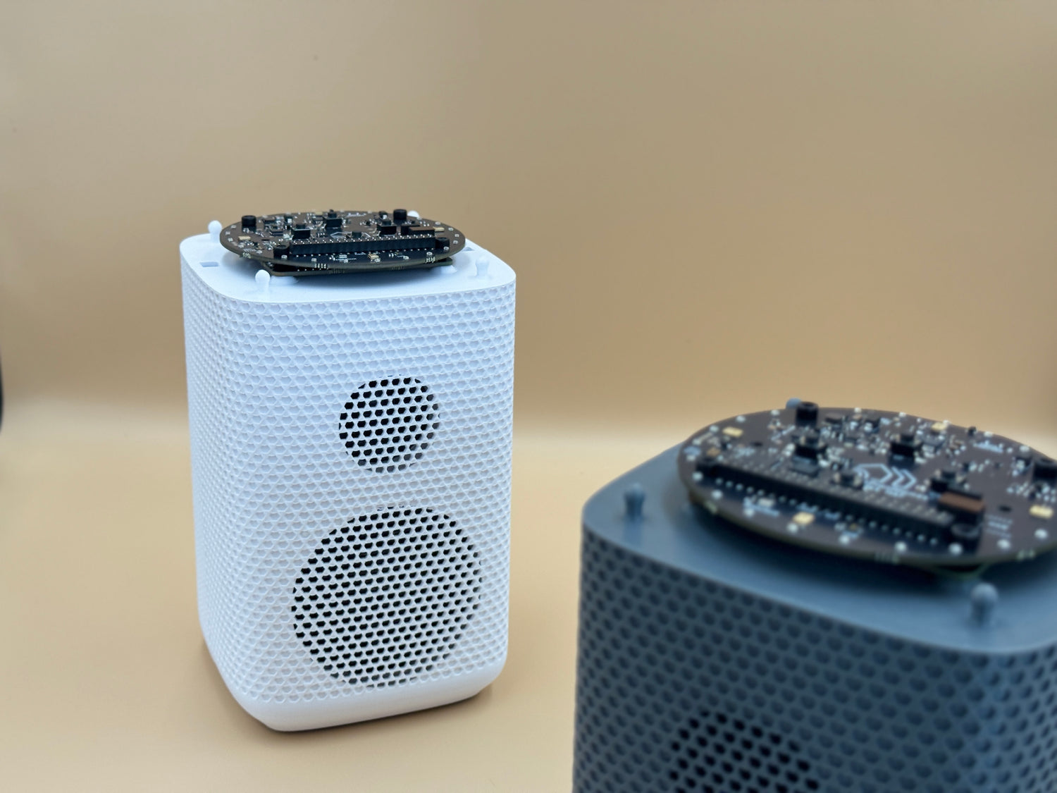The Satellite1 uses advanced XMOS audio processing to capture sound throughout the room with exceptional clarity, rivaling the top big-tech voice assistants on the market today. It continues to perform well in loud rooms and even while streaming music!