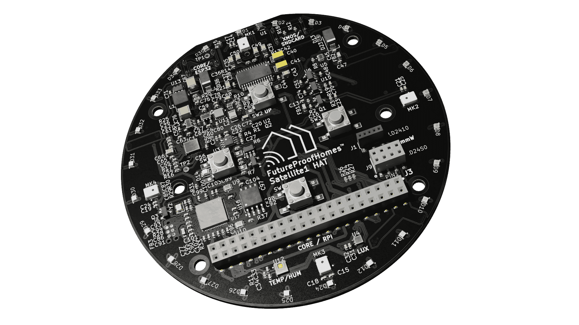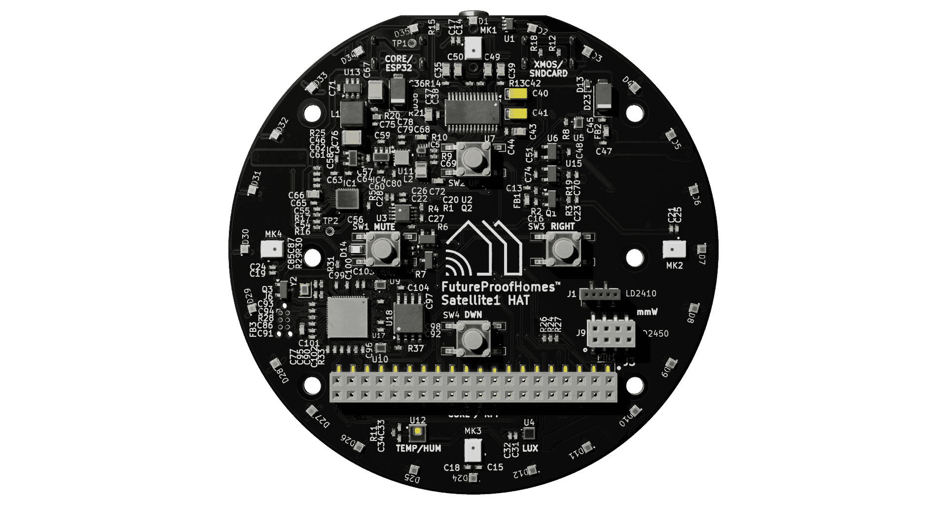 The Satellite1 HAT Board is designed to seamlessly integrate with our Core Board, empowering you to create a world-class voice assistant. It features 4 high-performance microphones powered by an XMOS audio processing chip, enabling clear audio capture even in noisy environments. Additionally, the HAT boasts 4 programmable buttons, a headphone jack, and a robust 25W speaker amplifier. It even acts as a multi-sensor by measuring room temperature, humidity, luminosity, and presence when paired with a mmWave radar sensor.